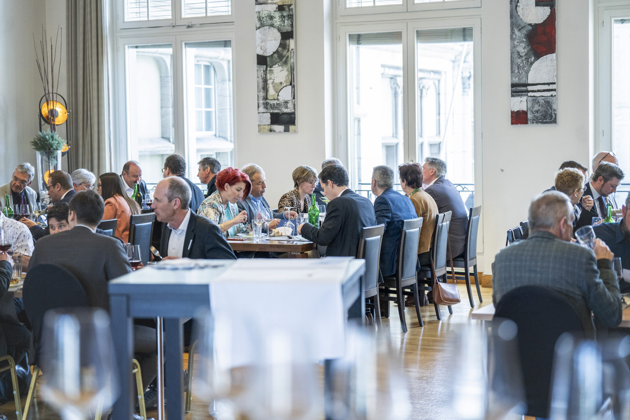 La salle Grenette était habitée d’une grande convivialité lors de la rencontre annuelle entre l’UPCF et les député•e•s des partis bourgeois qui a eu lieu à la fin du mois de mars. Ce rendez-vous est une tradition depuis plusieurs années, elle permet de créer des liens et de se régaler autour d’un repas toujours très apprécié.