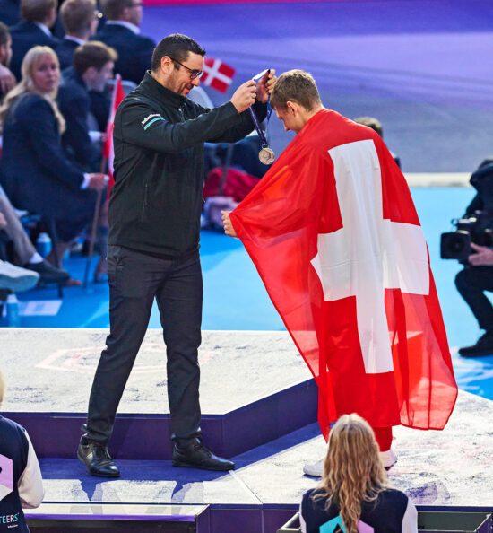 La moisson de médailles a encore été abondante pour la National Team avec 15 médailles et 21 médaillons d’excellence, attribués aux jeunes ayant obtenu au moins 700 points sur un maximum de 800. La Suisse se hisse ainsi à la troisième place du podium des nations, derrière la Chine et la Corée du Sud. « Si nous allons aux WorldSkills, c’est pour gagner », affirme Laurent Seppey, avant de poursuivre : « Nous savons que chaque jeune a le potentiel d’être sur le podium, grâce à la préparation intensive entre janvier et septembre. Cela leur permet de vivre une compétition aussi fluide que possible. » La Chine et la Corée du Sud dominent depuis plusieurs éditions. Ces deux pays disposent d’un vivier de candidat·e·s bien plus important que la Suisse et, pour eux, décrocher une médaille aux WorldSkills est synonyme de changement de statut social. « Nos jeunes viennent du système dual et préparent ces compétitions internationales en parallèle de leur emploi», rappelle Laurent Seppey qui insiste : « Ils·elles y consacrent un à deux jours par semaine ainsi que des week-ends, tandis que les candidat·e·s chinois·es et coréen·ne·s s’entraînent à plein temps. L’approche est donc très différente et cela rend d’autant plus impressionnants les résultats suisses. » Avant même de connaître les résultats, la National Team a pris le temps de célébrer lors de la soirée suisse, un rendez-vous instauré depuis 2013 par le Supporter Club, un organisme de soutien qui contribue au financement des compétiteur·rice·s suisses. « Après avoir tout donné, mais avant l’annonce des résultats, nous faisons la fête avec les jeunes et leurs familles », raconte Laurent Seppey. Cette année à Lyon, l’ambiance festive a été particulière avec près de 2000 supporters·trices venu·e·s de Suisse, parmi lesquels familles, ami·e·s, et représentant·e·s politiques. « Les autorités ont répondu présent, ce qui montre que le soutien politique est bien là. Nous sentons un engouement croissant, et c’est fondamental pour nos jeunes. »