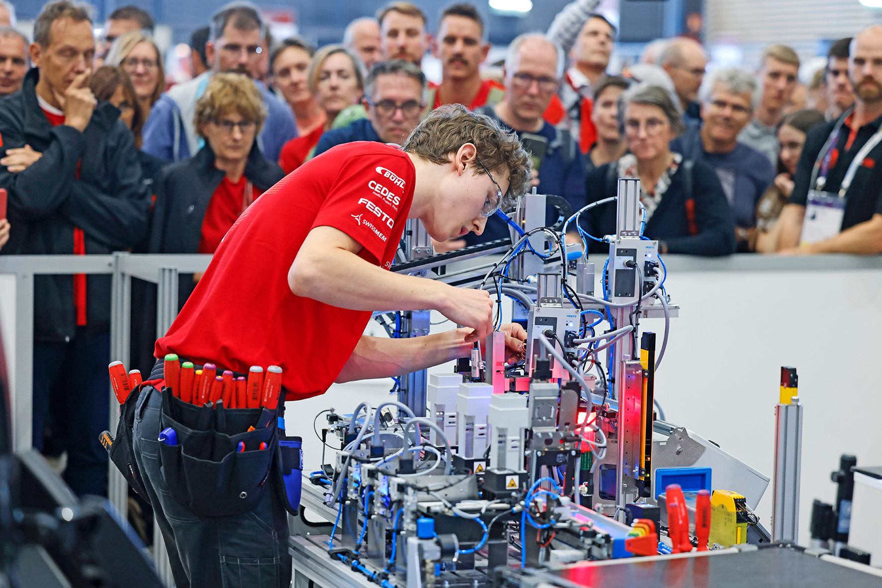 La moisson de médailles a encore été abondante pour la National Team avec 15 médailles et 21 médaillons d’excellence, attribués aux jeunes ayant obtenu au moins 700 points sur un maximum de 800. La Suisse se hisse ainsi à la troisième place du podium des nations, derrière la Chine et la Corée du Sud. « Si nous allons aux WorldSkills, c’est pour gagner », affirme Laurent Seppey, avant de poursuivre : « Nous savons que chaque jeune a le potentiel d’être sur le podium, grâce à la préparation intensive entre janvier et septembre. Cela leur permet de vivre une compétition aussi fluide que possible. » La Chine et la Corée du Sud dominent depuis plusieurs éditions. Ces deux pays disposent d’un vivier de candidat·e·s bien plus important que la Suisse et, pour eux, décrocher une médaille aux WorldSkills est synonyme de changement de statut social. « Nos jeunes viennent du système dual et préparent ces compétitions internationales en parallèle de leur emploi», rappelle Laurent Seppey qui insiste : « Ils·elles y consacrent un à deux jours par semaine ainsi que des week-ends, tandis que les candidat·e·s chinois·es et coréen·ne·s s’entraînent à plein temps. L’approche est donc très différente et cela rend d’autant plus impressionnants les résultats suisses. » Avant même de connaître les résultats, la National Team a pris le temps de célébrer lors de la soirée suisse, un rendez-vous instauré depuis 2013 par le Supporter Club, un organisme de soutien qui contribue au financement des compétiteur·rice·s suisses. « Après avoir tout donné, mais avant l’annonce des résultats, nous faisons la fête avec les jeunes et leurs familles », raconte Laurent Seppey. Cette année à Lyon, l’ambiance festive a été particulière avec près de 2000 supporters·trices venu·e·s de Suisse, parmi lesquels familles, ami·e·s, et représentant·e·s politiques. « Les autorités ont répondu présent, ce qui montre que le soutien politique est bien là. Nous sentons un engouement croissant, et c’est fondamental pour nos jeunes. »